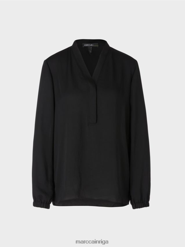 Nesarežģīta Blūze No Plūstošas, Nedaudz Mirdzošas Mikrošķiedras Kvalitātes, Ar Garām Piedurknēm. Platā Blūze Ir Izrotāta Pie Kakla Izgriezuma Ar Dubultotām Un Piegrieztām Locījuma Malām, Kas Piešķir Dizainam Sievišķīgu Izskatu. Aprocēs Ir Iestrādāta Elastīga Lente.