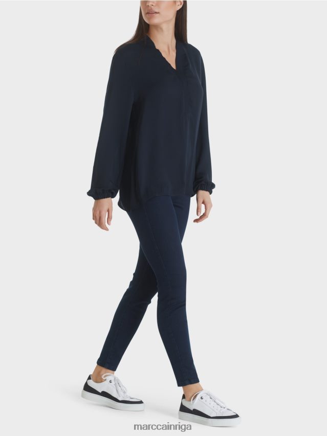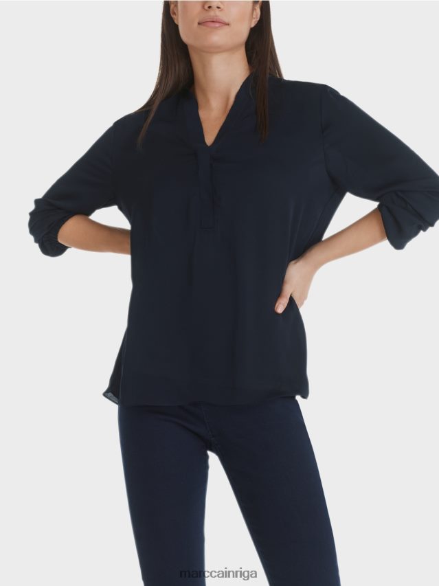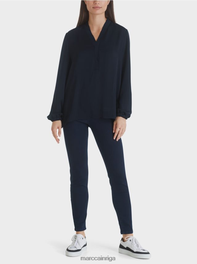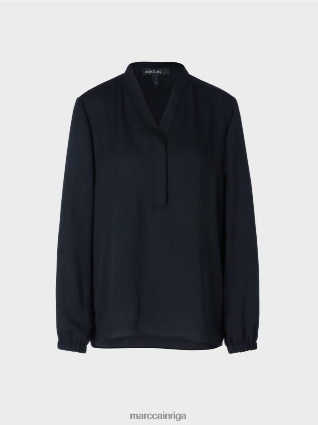 Nesarežģīta Blūze No Plūstošas, Nedaudz Mirdzošas Mikrošķiedras Kvalitātes, Ar Garām Piedurknēm. Platā Blūze Ir Izrotāta Pie Kakla Izgriezuma Ar Dubultotām Un Piegrieztām Locījuma Malām, Kas Piešķir Dizainam Sievišķīgu Izskatu. Aprocēs Ir Iestrādāta Elastīga Lente.