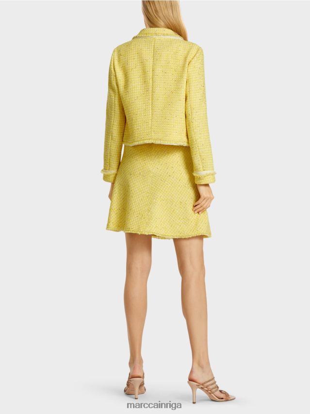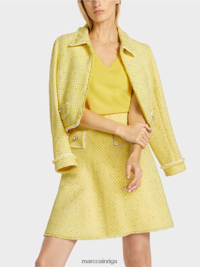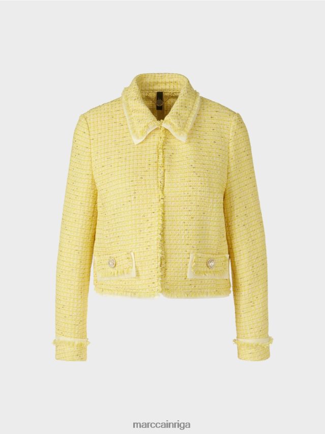 šī Jaka Ir Iedvesmota No Sešdesmito Gadu Stila. Tas Ir Izgatavots No Pušķai Līdzīga Materiāla, Un Tam Mūsdienīgu Pieskaņu Piešķir Vēsās Bārkstis Uz Apkakles, Aizdares Malas, Piedurknēm Un Atlokiem. Imitācijas Atloki Ir Pārklāti Ar Smalku Audumu, Lai Radītu Slāņainu Efektu. Atlokiem Ir Arī Dekoratīvas Pogas, Kas Izgatavotas No Rhinestones Un Pērlītēm, Kas Atbalso Auduma Mirdzošo Dziju.
