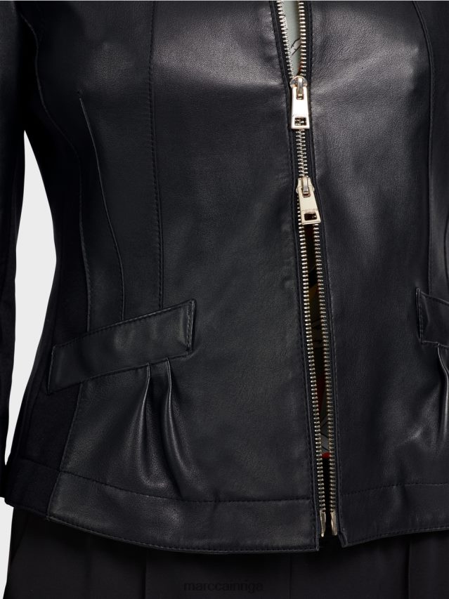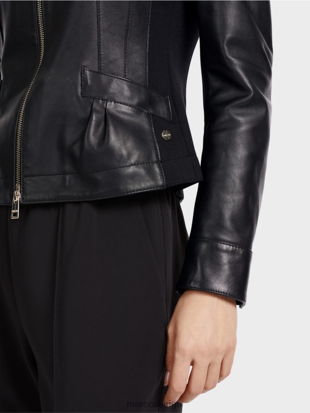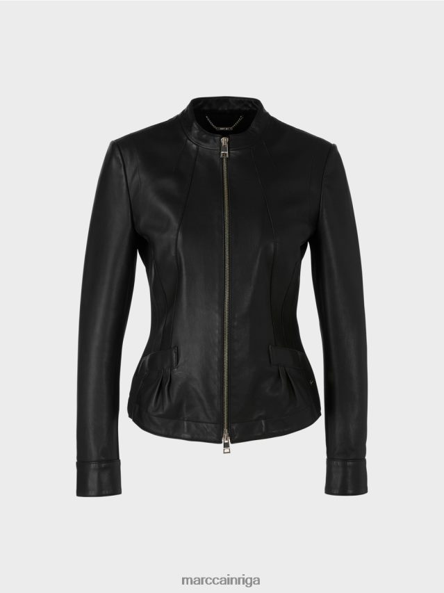 apģērbs melns VRBHXD348 Marc Cain sievišķīga ādas jaka