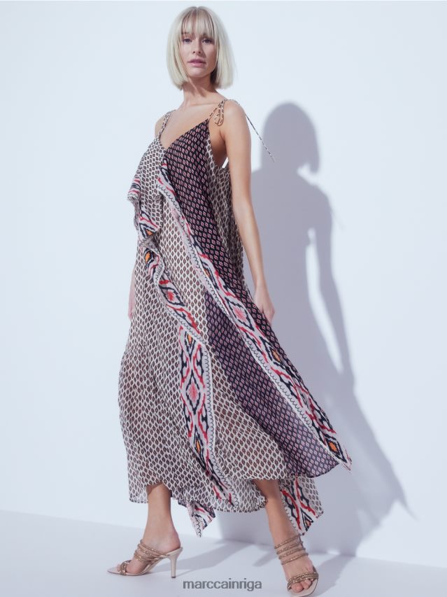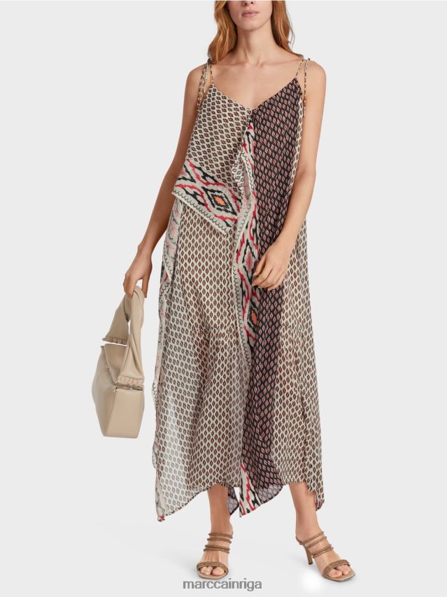 Eleganta Konstrukcija Un Jauktie Raksti Padara šo Kleitu Unikālu. Pamatforma Ir A-line Slip Kleita Ar Zemu Locījumu. Sākot No Dekoltē, Precei Ir Dāsnas Krokas, Kas Ir Asimetriski Izvietotas Priekšpusē Un Simetriski Aizmugurē. Kleita Ir Odere.