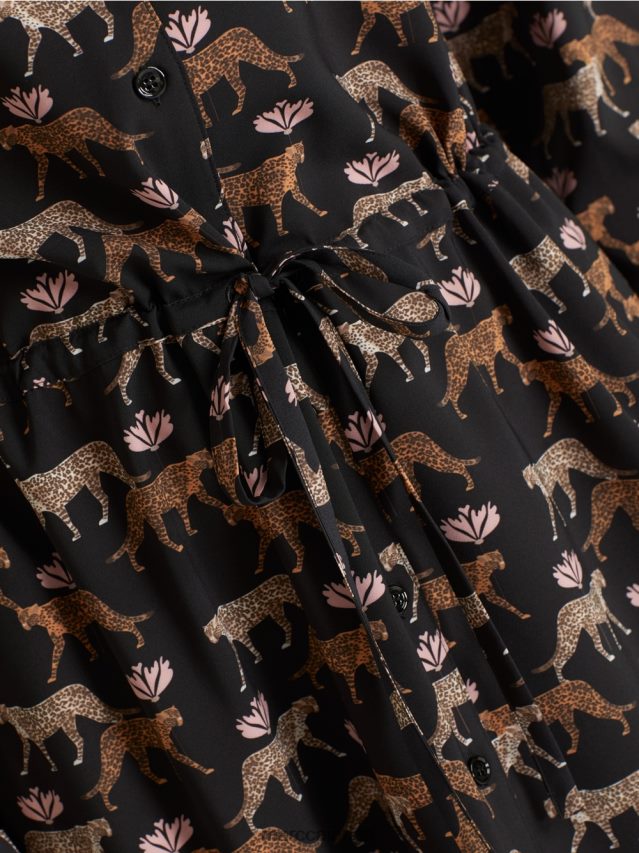 Kleita Sevi Raksturo Mazi Leopardi, Kas Apdrukāti Dažādos Toņos. šauro Joslu Var Izmantot, Lai Akcentētu Vidukli. Plūstošā Kreklblūzes Kleita Ar Divu Pogu Aprocēm Ir Caurpogāta Un Izgatavota Ar Elastāna Saturu. īsi šķēlumi Sānos Un Kabatas Noslēdz Stilu.