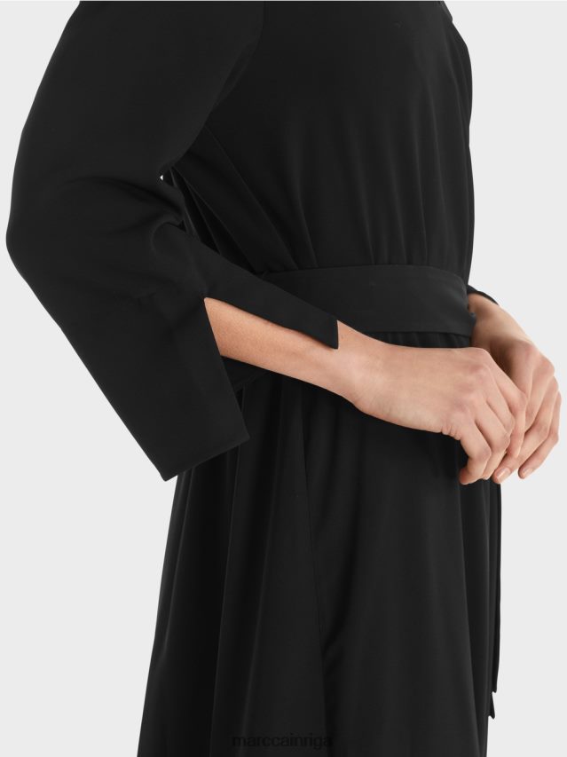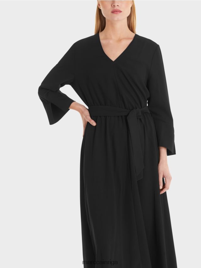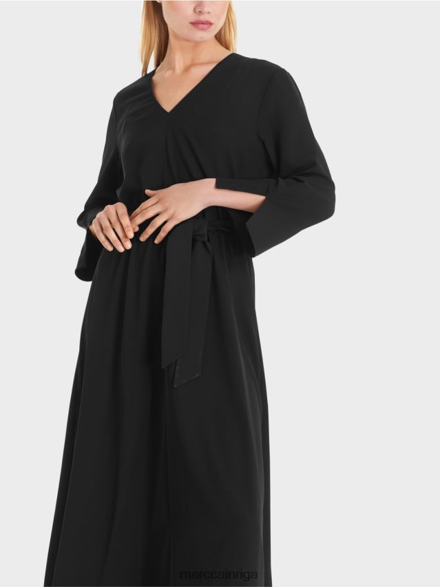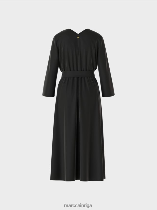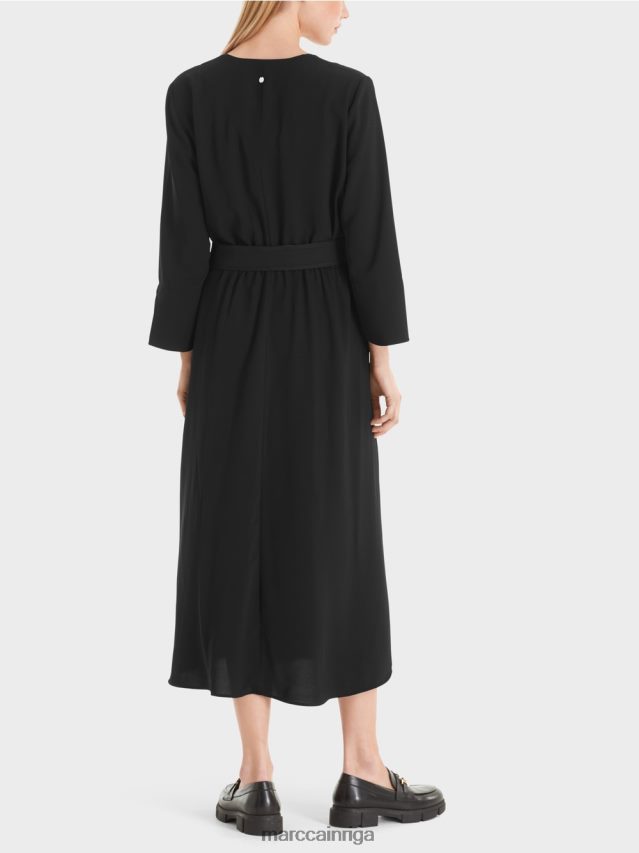 Kleita Ir Izgatavota No Plūstoša Materiāla Un Tai Ir Augumam Pieguļošs Siluets. Viduklis Ir Uzsvērts Ar šauru Elastīgo Jostasvietu Un Jostu. Prece Ir Ar V Veida Kakla Izgriezumu Un šķēlumiem Aproces. Pie Kakla Uzlikts Neliels Piekariņš Ar Logotipu.