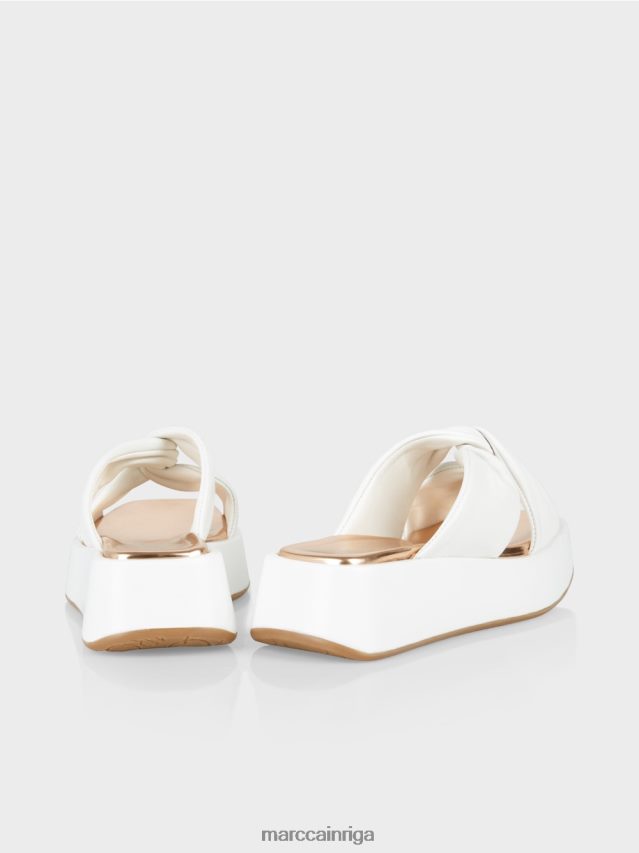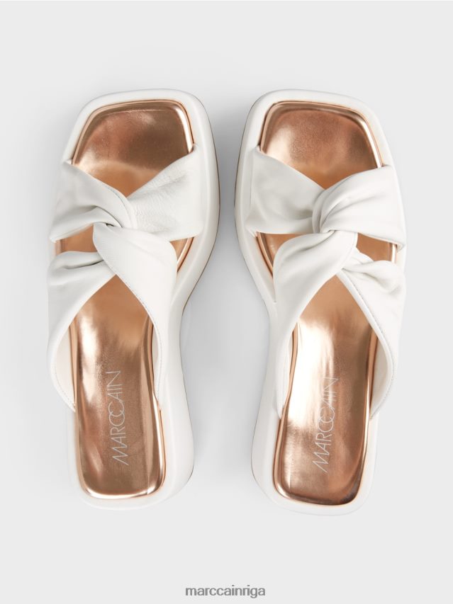Eleganti Mūļi Ar Mīkstām Siksnām. Glītā Mezglotā Detaļa Uz Krusteniskās Siksnas Piešķir šīm Slip-ons Sievišķīgu Pieskārienu. Mīkstajai Kājiņai Ir Izsmalcināts Spīdums. Apaviem Ir Kvalitatīvs Ietīts ķīļveida Papēdis Un Mūsdienīga Kvadrāta Forma. ārējā Zole Ar Reljefu Marc Cain Uzrakstu Ir Burvīga Papildu Funkcija.